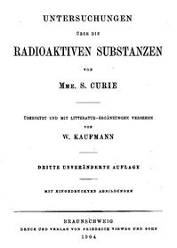 Untersuchungen über die radioaktiven Substanzen von Marie Curie, übersetzt und…